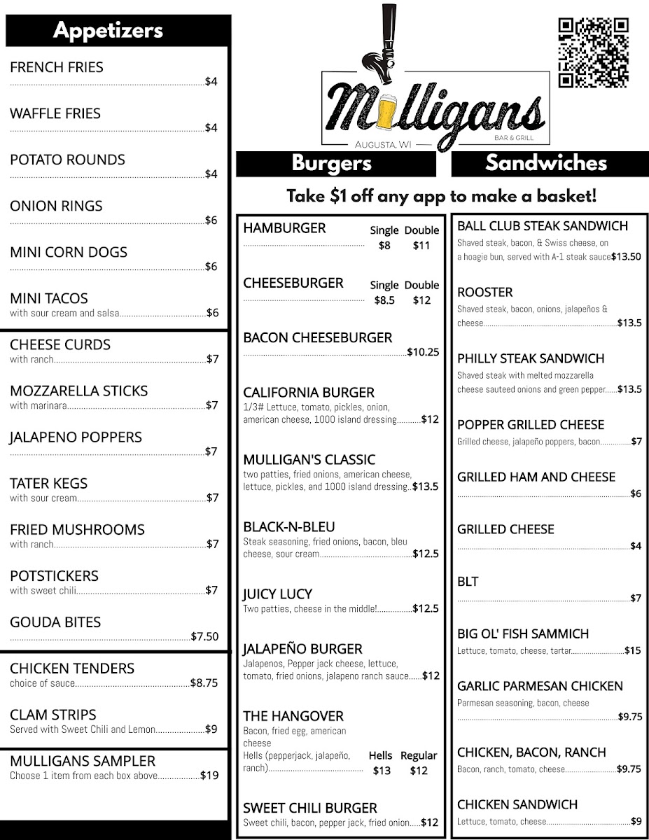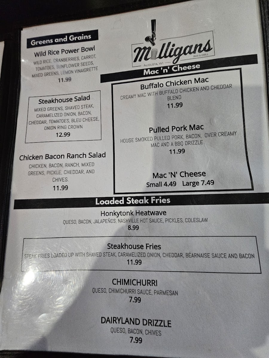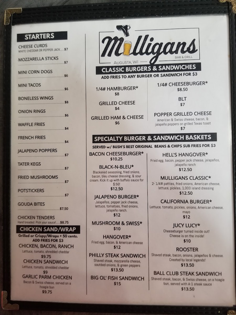 Mulligans Menu